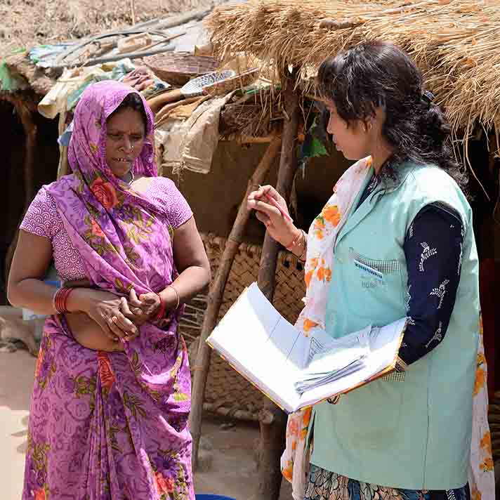CHWs conduct door-to-door surveys, covering the entire population of the project area